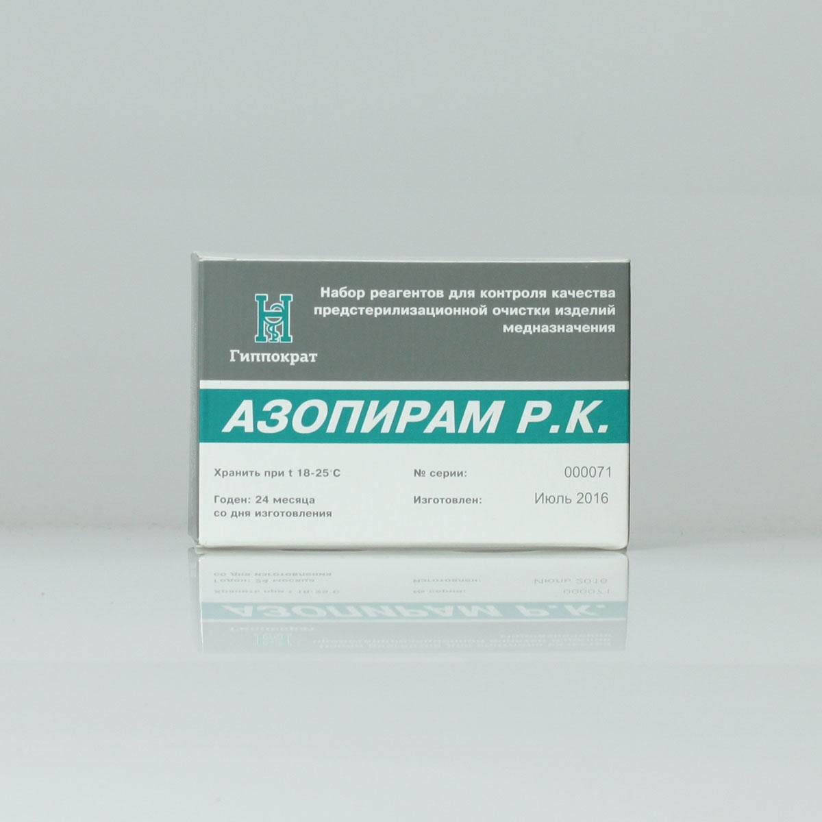 Для того чтобы подготовить 1 литр реагента, необходимо 100 грамм амидопирина и 1-1,5 грамма аналана солянокислотного типа. Раствор двух этих веществ необходимо подвести к объему в 1 литр, добавив в него этиловый спирт 95%. Данную смесь необходимо тщательно перемешивать вплоть до полного растворения веществ. Для того, чтобы получить непосредственно сам раствор для проведения проверки на качество очистки инструмента, следует смешать в равных долях имеющийся раствор Азопирама и перекиси водорода 3%. Перед тем, как полученный раствор использовать по назначению - необходимо произвести проверку.